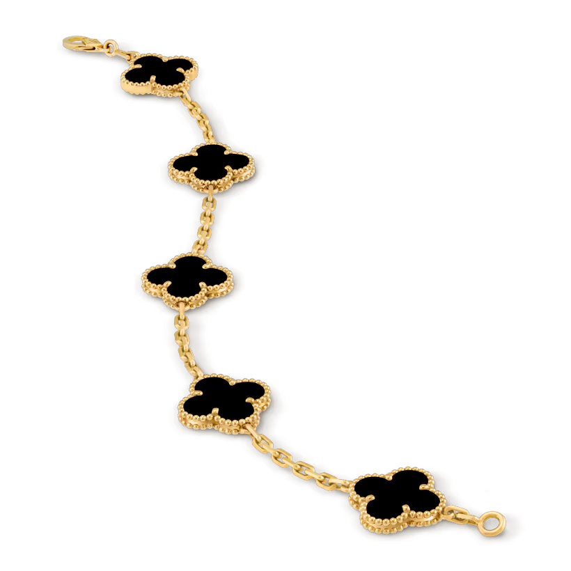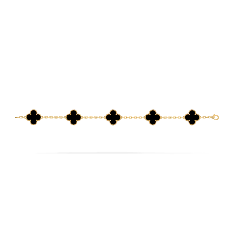 Браслет Vintage Alhambra, 5 мотивів, золото, інкрустований оніксом. Довжина браслету 19 см