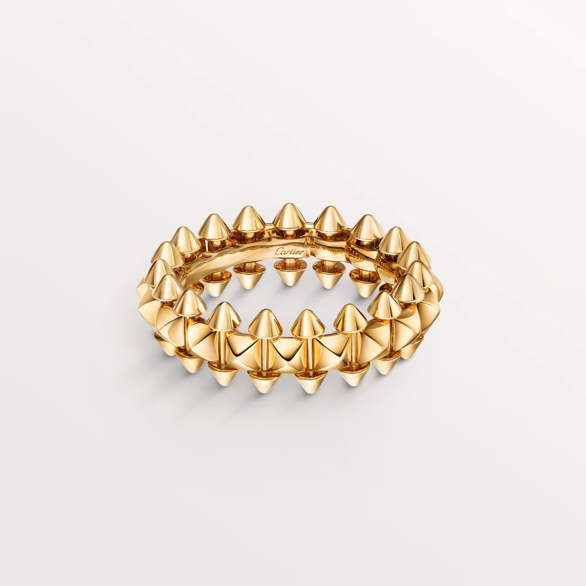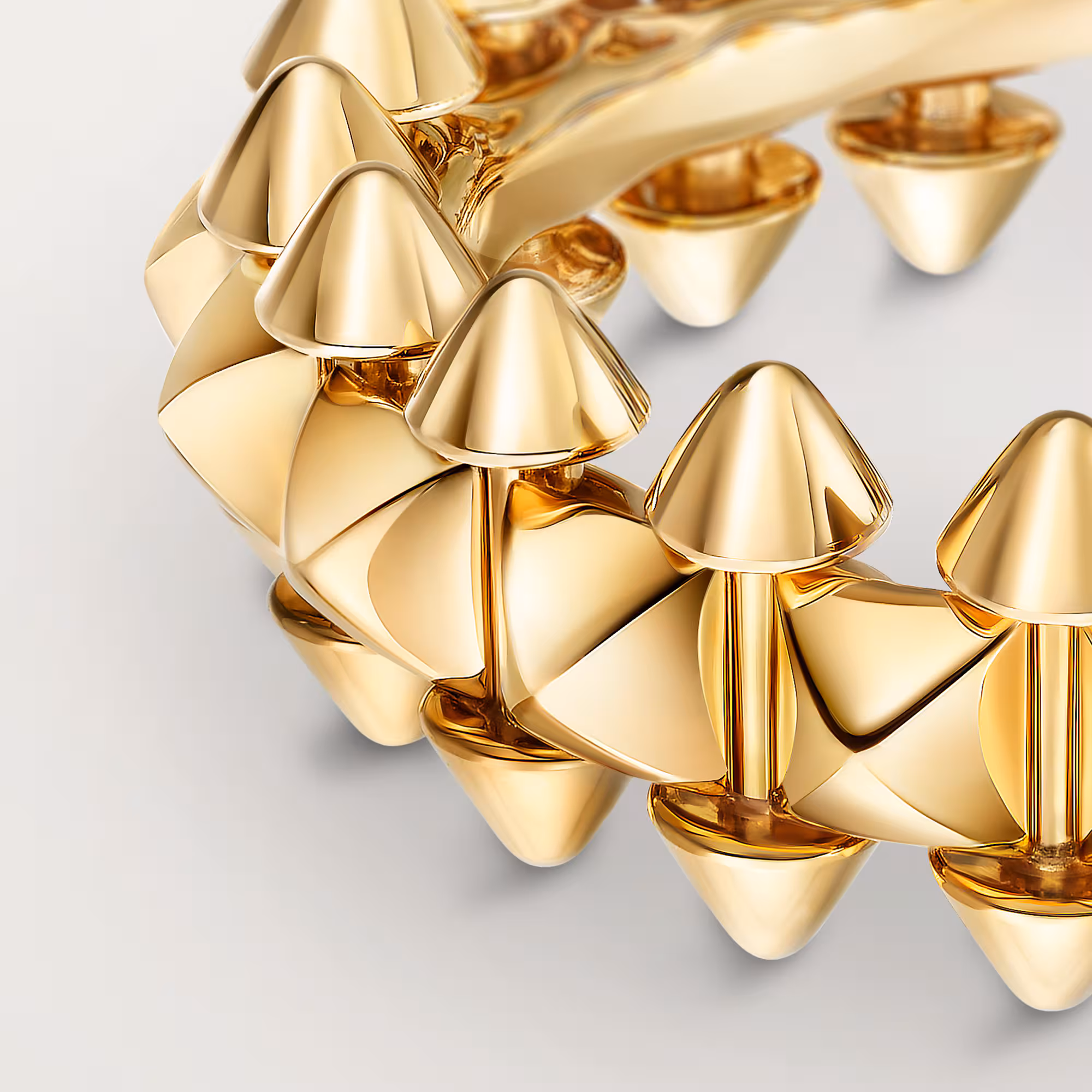 Париж, 2019. Дизайнери осучаснюють історичні шипи, подвоюючи їх і роблячи геометрію тактильною. Каблучка тримає баланс між панком і кутюром, залишаючись вишуканою.