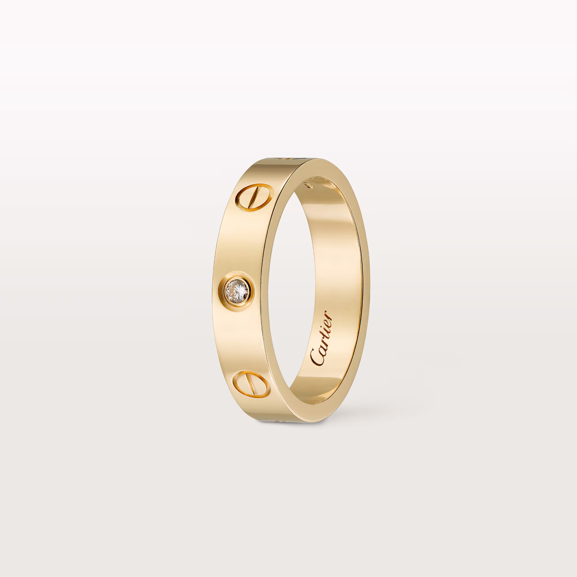 Каблучка Love small model, золото 750 проби, інкрустована діамантом круглої огранки загальною вагою 0,02 карата. Ширина 4 мм