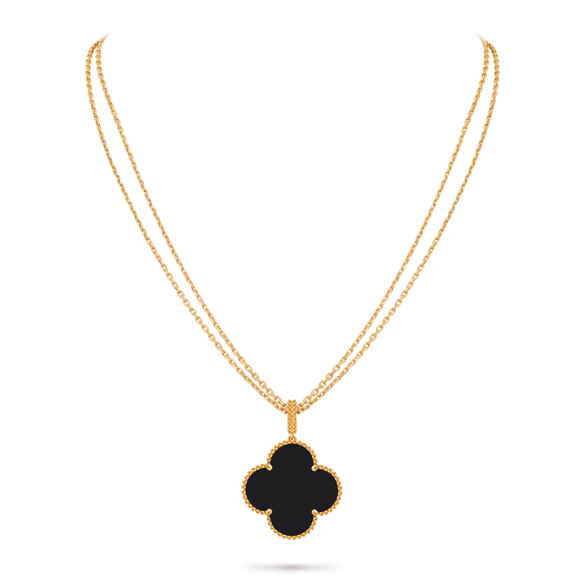 Підвіска Magic Alhambra 1 мотив, золото 750 проби, інкрустована оніксом. Довжина ланцюжка: 90 см.