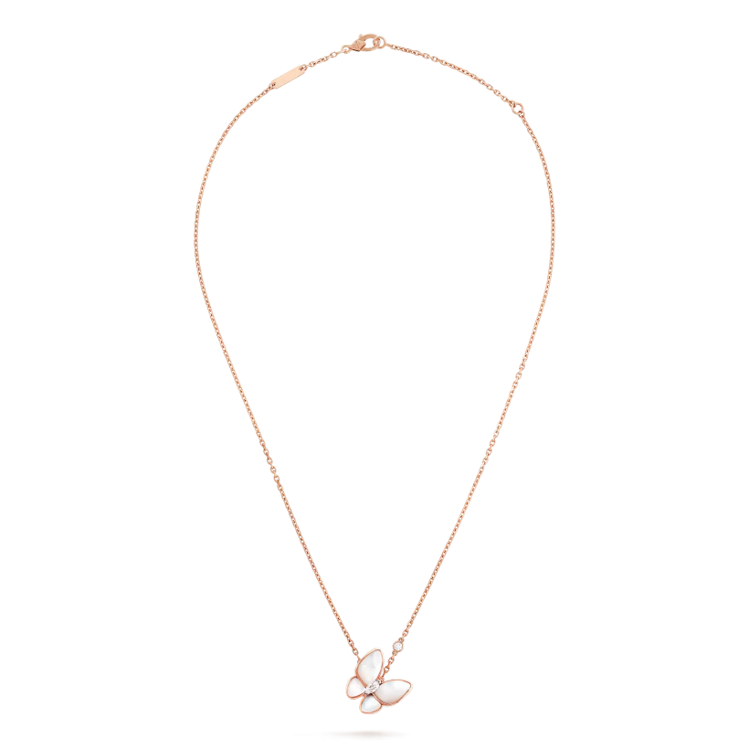 Підвіска Two Butterfly, золото 750 проби, інкрустована натуральними діамантами огранки “маркіз” загальною вагою 0,2 карата. Довжина ланцюжка: 42 см.