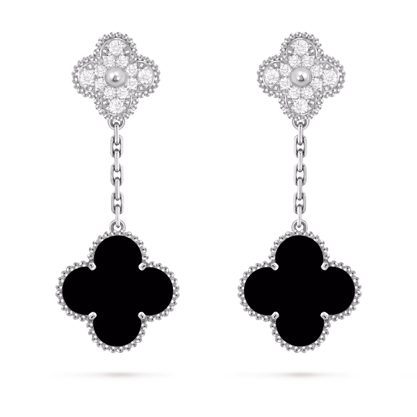 Сережки Magic Alhambra, 2 мотиви з діамантами 0,96 ct та чорним перламутром Оригінальна ціна: 5 200,00 $.Поточна ціна: 5 000,00 $.